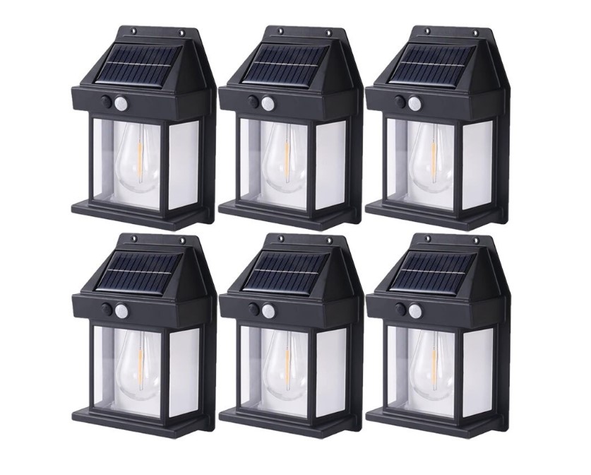 6x Lămpi Solare cu Bec, Senzor de Mișcare, 3 Moduri de Iluminare, Rezistente la Intemperii, Instalare Fără Cabluri