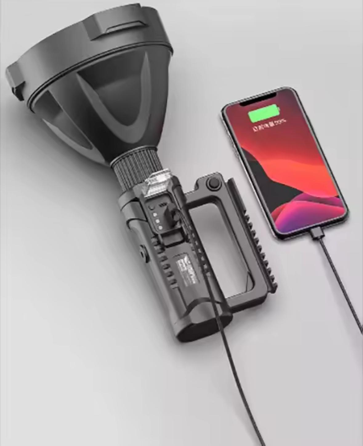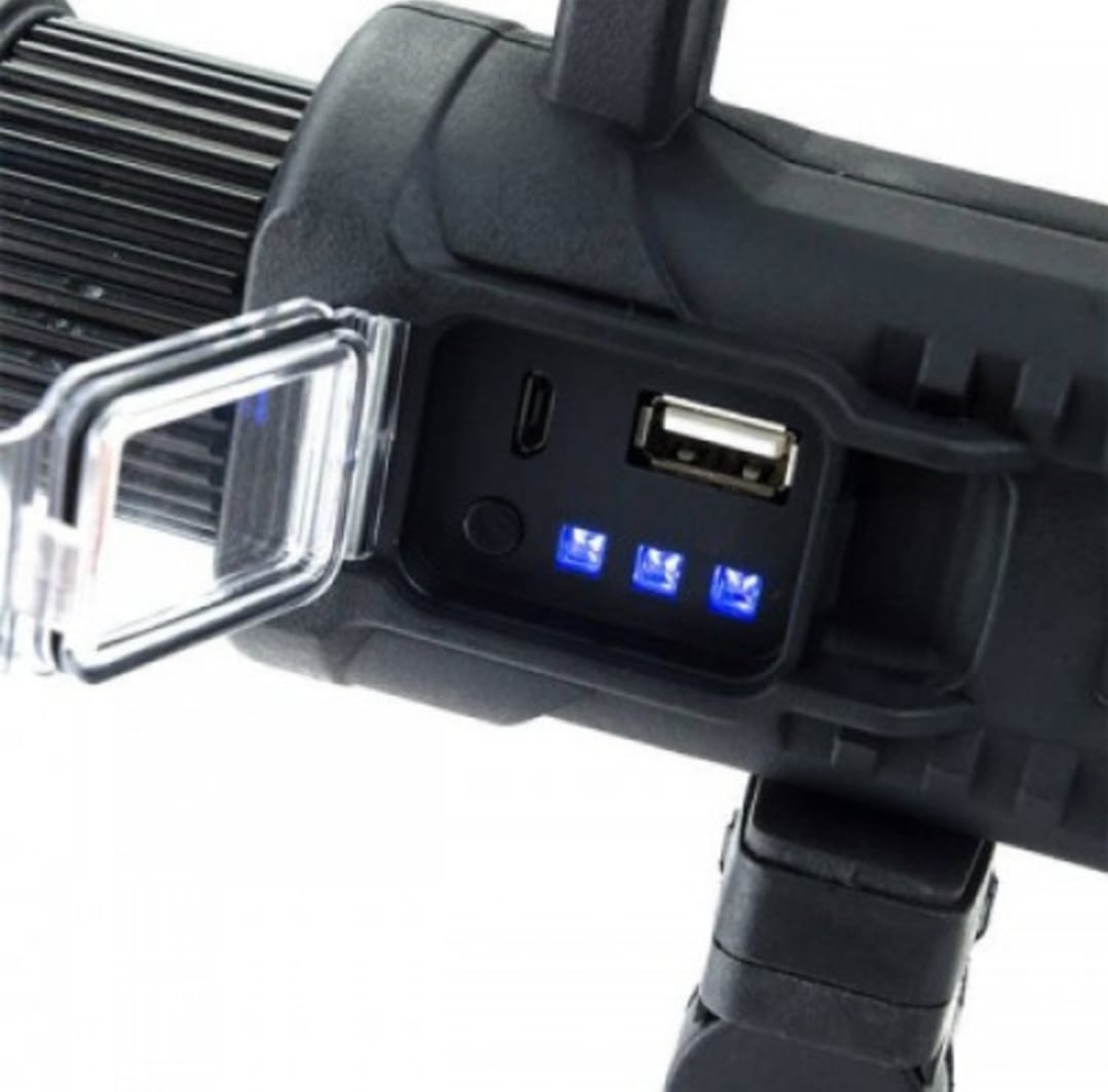 Proiectată pentru rezistență și mobilitate, lanterna dispune de mâner ergonomic, încărcare USB și carcasă rezistentă la apă, fiind potrivită pentru orice condiții meteo.