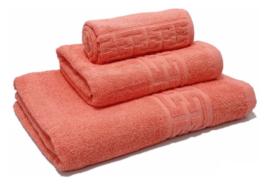 Set 3 Prosoape de Baie Bumbac 100%, Corai, Model Grecesc, Absorbție Ridicată, 500 gr