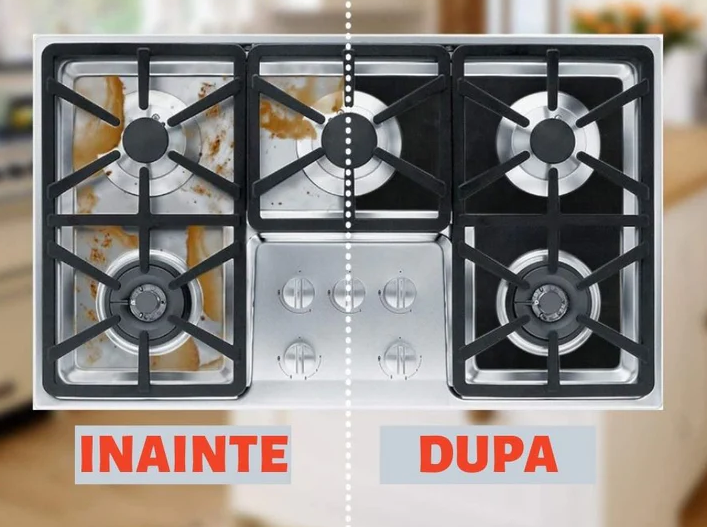 Aceste folii de protectie se adapteaza oricarui model de aragaz si acopera plita pana la ochiurile aragazului.
