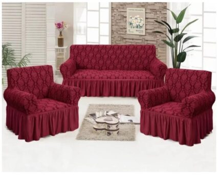 Husa elastică pentru canapea 3 locuri, model Jacquard, Maro