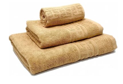 Set 3 Prosoape de Baie Bumbac 100%, Maro, Model Grecesc, Absorbție Ridicată, 500 gr