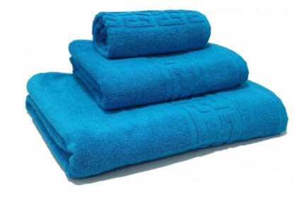 Set 3 Prosoape de Baie Bumbac 100%, Turcoaz, Model Grecesc, Absorbție Ridicată, 500 gr