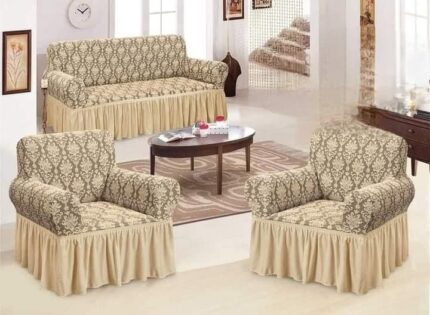 Set huse elastice canapea si fotolii, model Jacquard, Bej