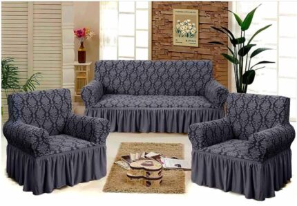 Set huse elastice canapea si fotolii, model Jacquard, Gri inchis