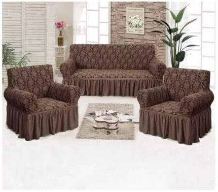 Set huse elastice canapea si fotolii, model Jacquard, Maro