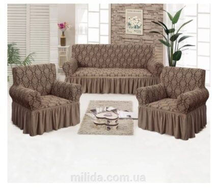 Set huse elastice canapea si fotolii, model Jacquard, Cafea cu lapte