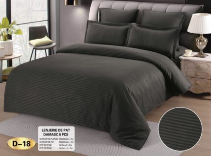 Set Lenjerie de Pat Damasc, Bumbac 100%, 6 Piese, Cearceaf cu Elastic, Confort și Eleganță, Negru