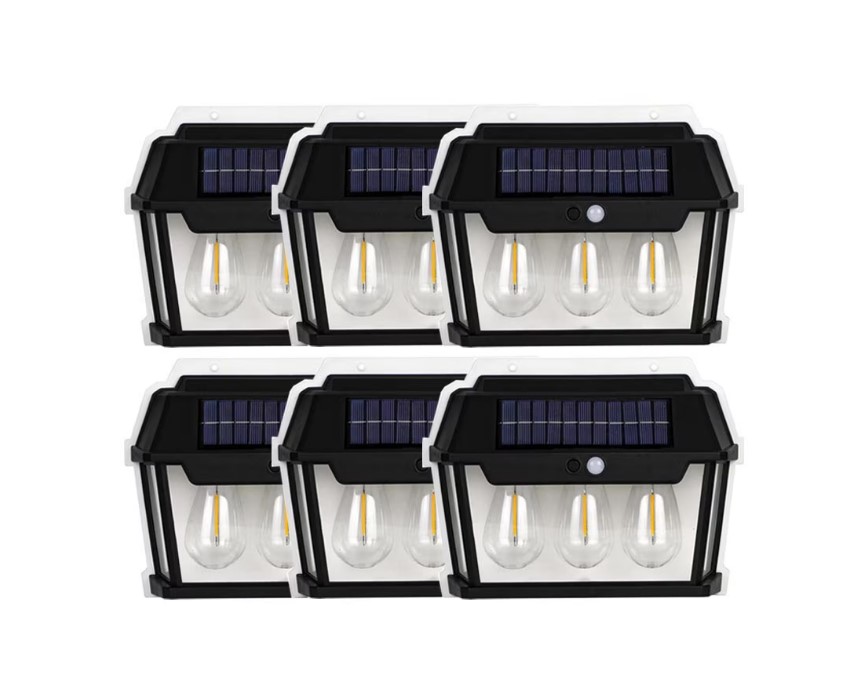 6x Lămpi Solare cu Bec, Senzor de Mișcare, 3 Moduri de Iluminare, Rezistente la Intemperii, Instalare Fără Cabluri
