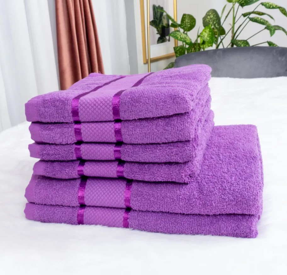Set 6 Prosoape din Bumbac 100% – 400 g/mp – Ultra Absorbante și Confortabile, Mov