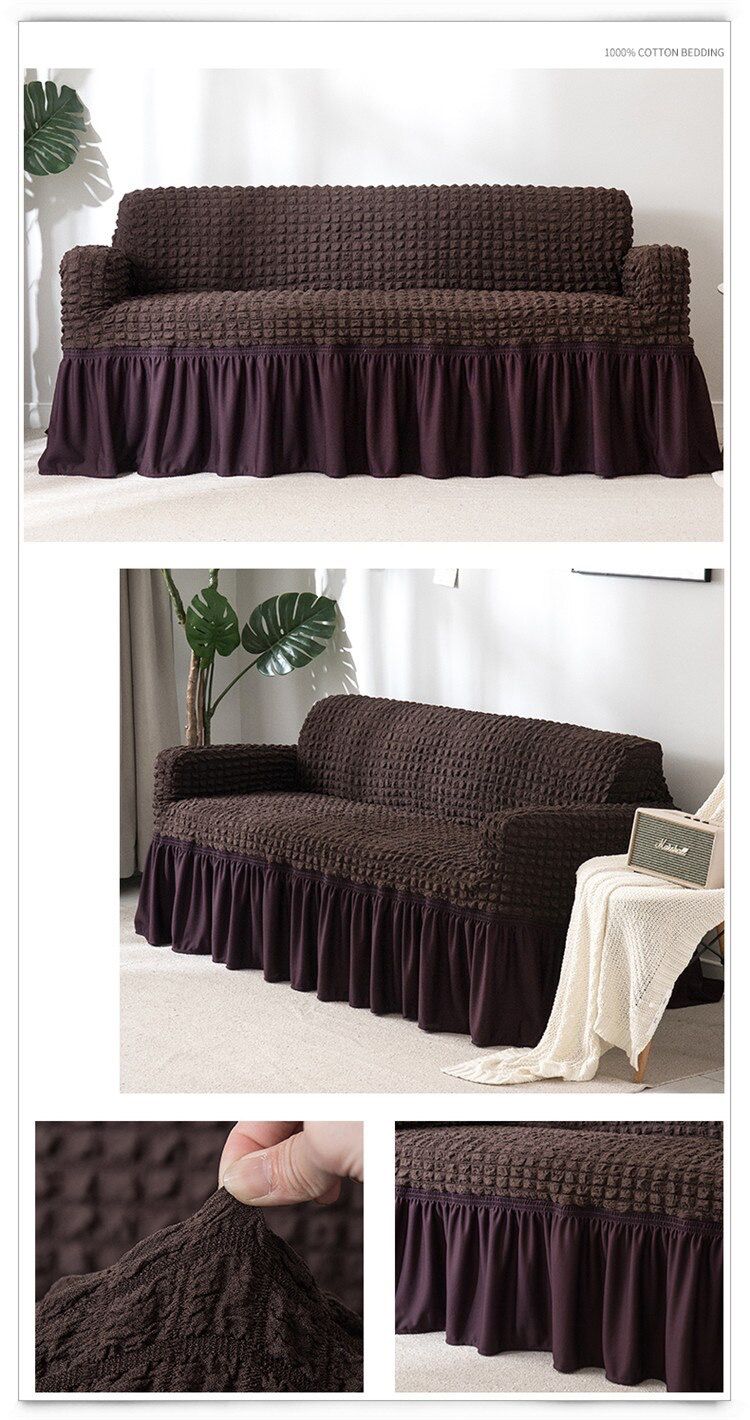 Set Huse Elastice, Canapea 3 Locuri + 2 Fotolii, Creponate, Maro